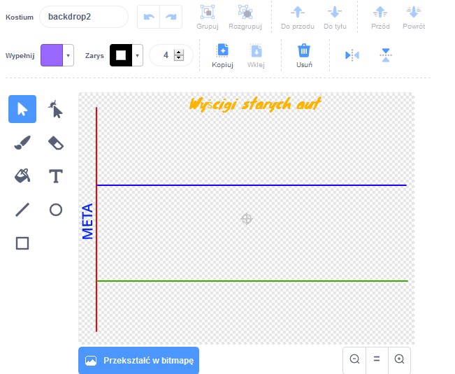Przygotujemy scenę wyścigu w edytorze grafiki (najlepiej w trybie wektorowym).