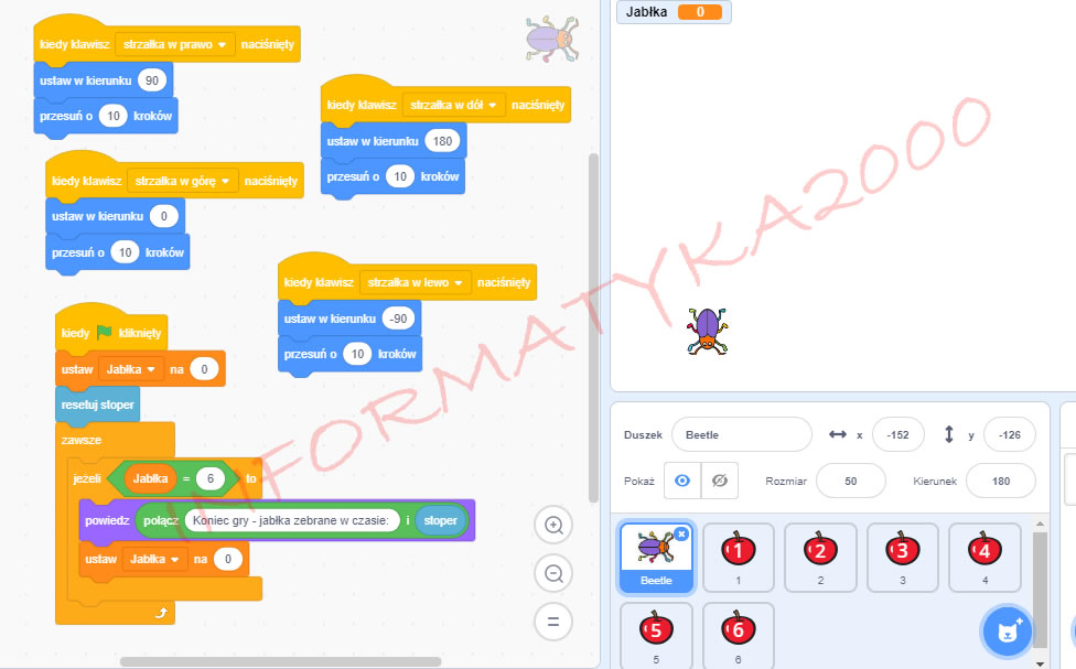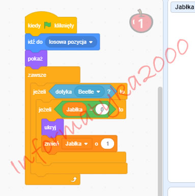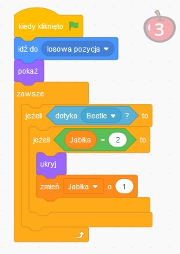Dodajemy odpowiedni skrypt, dzięki któremu nasz Żuk będzie zjadał jabłka w odpowiedniej kolejności.