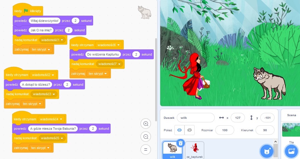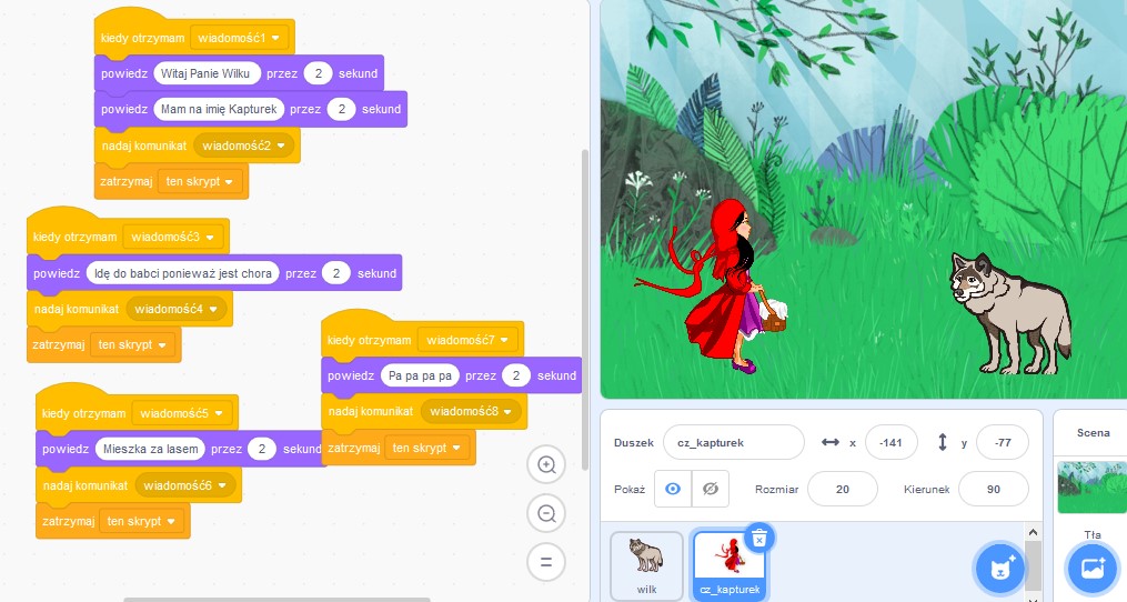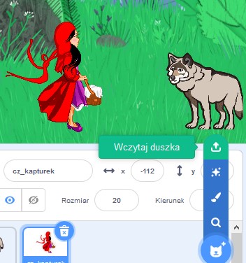 - Przygotuj dwa duszki: dziewczynkę i wilka.